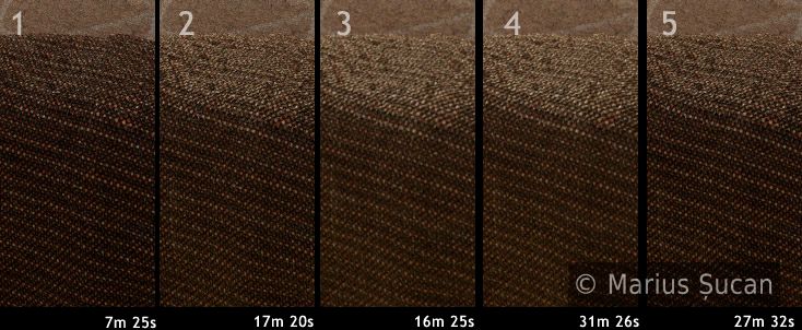 Jump in this page to: optimizations: baking shaders and render times tables, AA render tests or final renders settings.