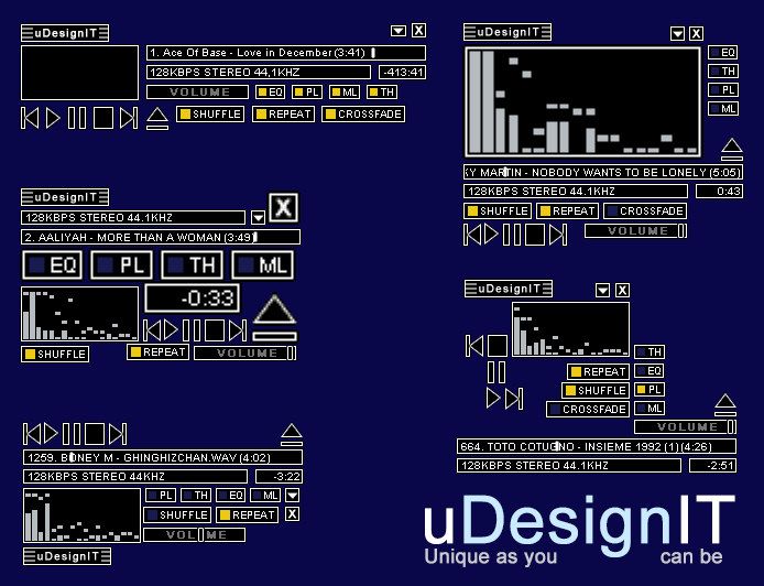 These skins are outdated and quite ugly. They were created for Winamp 3 and they did not work well in Winamp 5. Click on the thumbnails to download any of them.