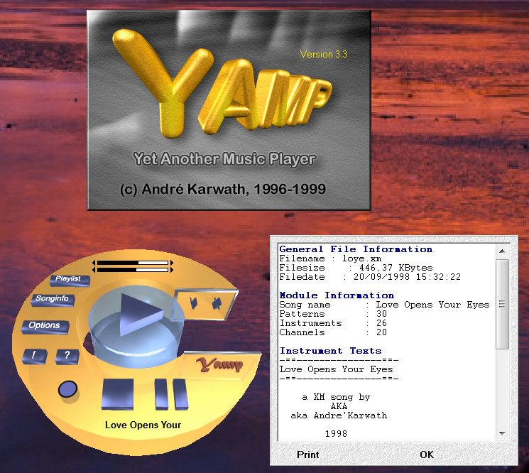 This skin is based on a skin named "CO" included with Yamp 3.3, an old music player from the late 90s, developed by André Karwath. WINyAMP3 v2 was more advanced and more cute than my previous skin. It was featured on deviantArt.com.