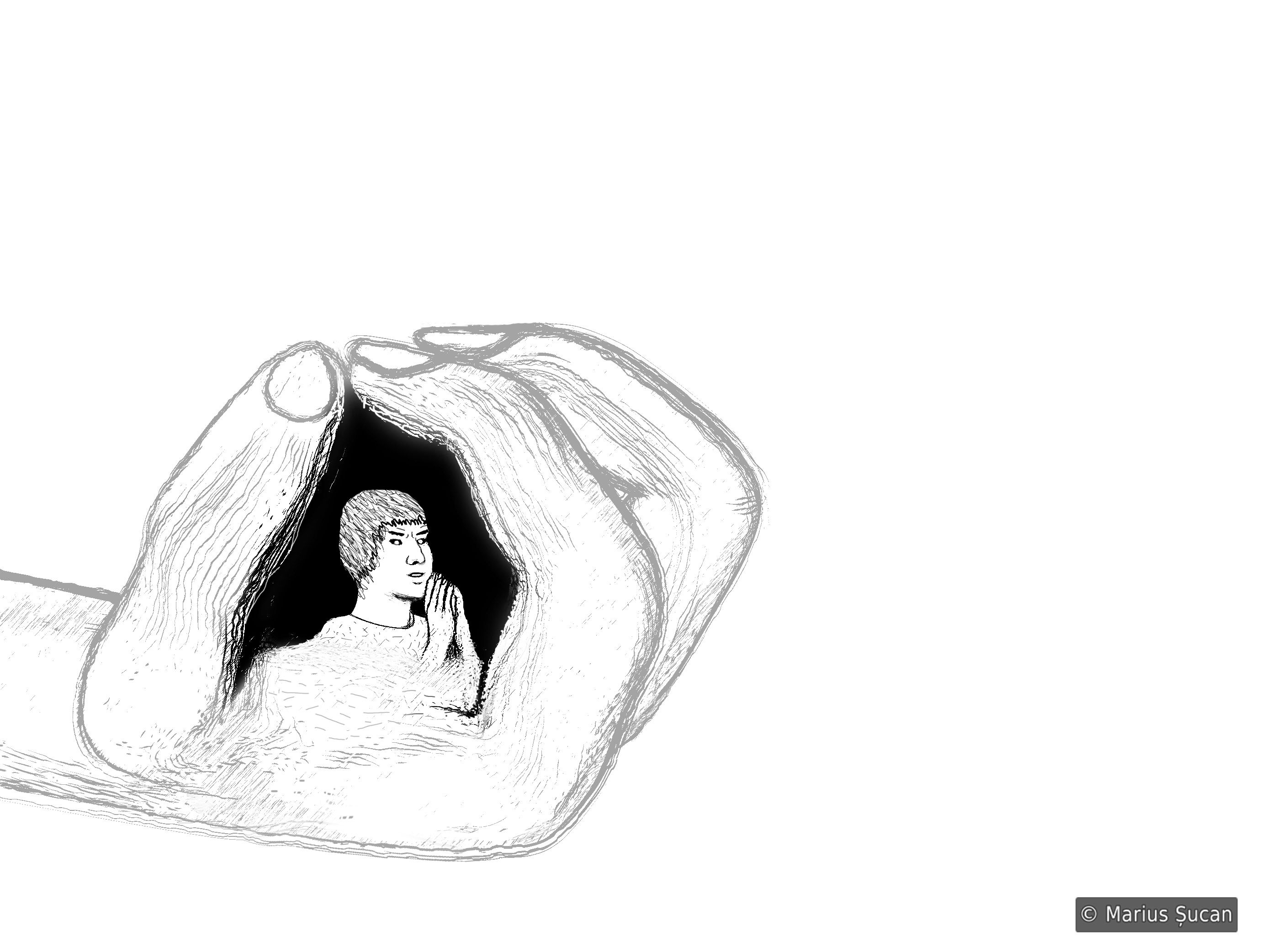 This image is an illustration for the artistic writing named: Înainte de mâine. It is a writing in Romanian, by me, about those people who pray at the end of the day only for their own good and ask forgiveness, people who pretend have a good heart while in reality they are not.