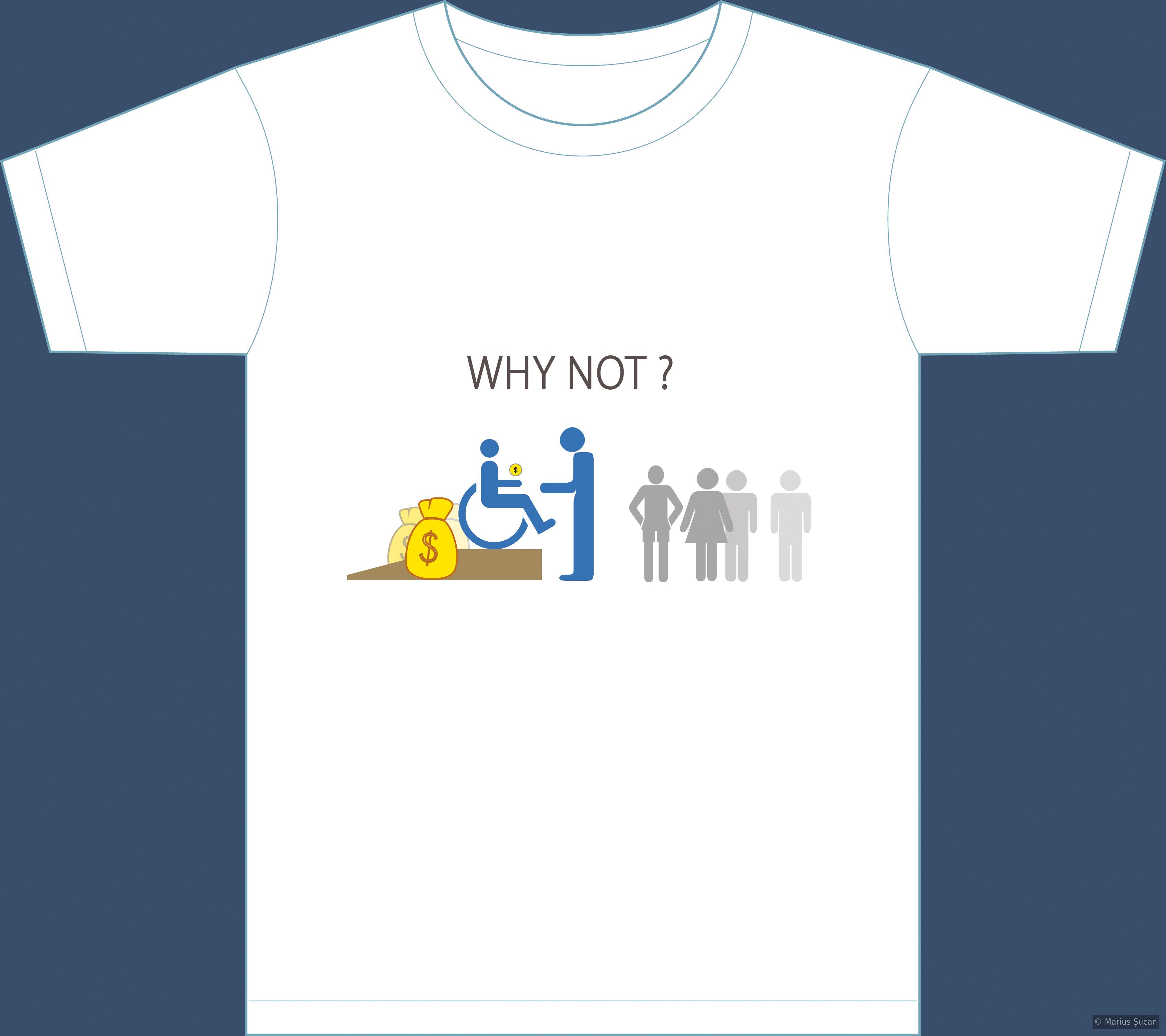 It is a common practice in Eastern Europe for "healthy"/able-bodied old people, regardless of their wealth, to give money out of pity to disabled people. This t-shirt design presents the opposite situation. :)