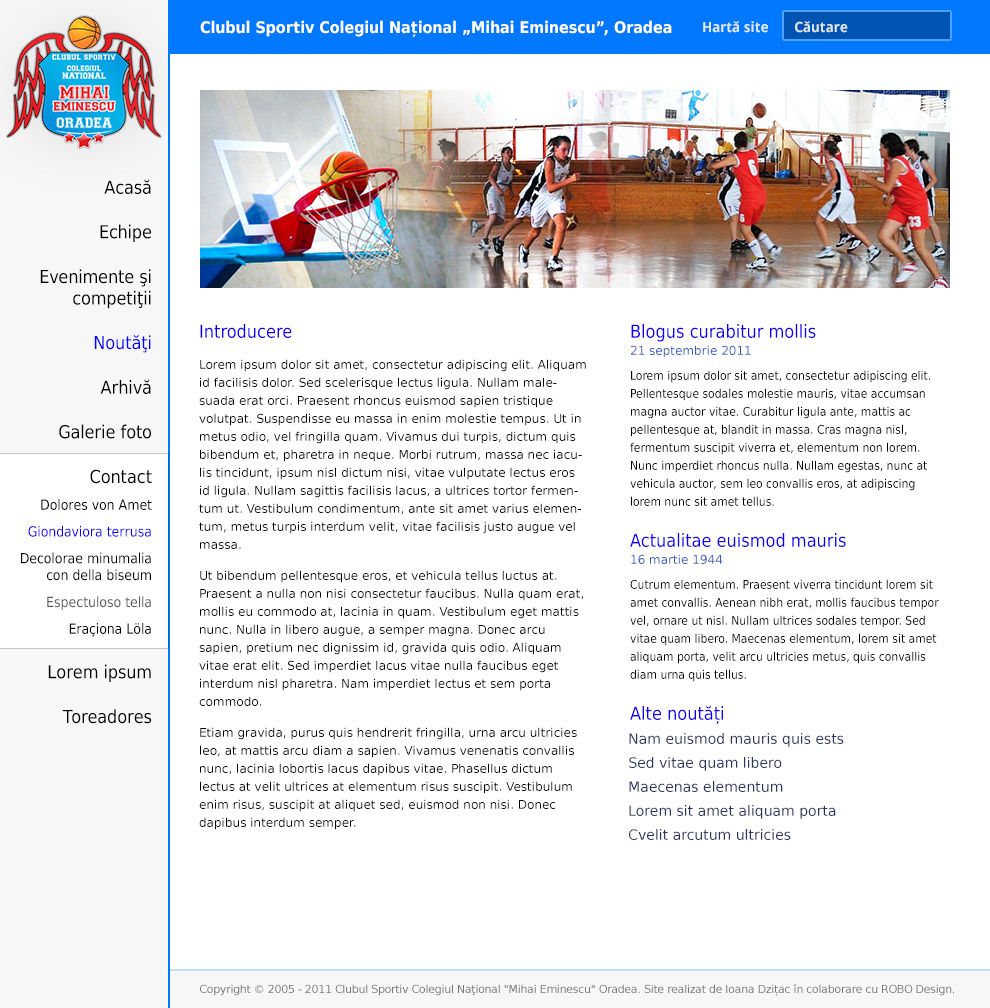 I made this site interface for the Basketball Club of the National College "Mihai Eminescu" from Oradea, România.