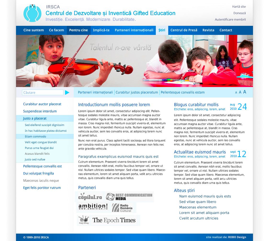 IRSCA interface Created Tuesday, 21 September 2010. Share link An interface I made for the web site of IRSCA - Gifted education.