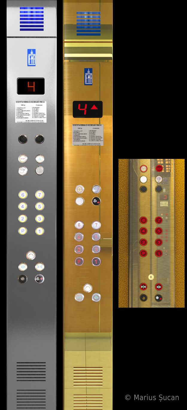 The IFMA project is one of the biggest project I worked on. "Societatea Română de Ascensoare IFMA S.A." (a Romanian company which creates elevators) needed a presentation catalog for their elevators. Beginning from June 2003 to September 2003, I worked for 6 high quality, photo-realistic, elevators ready for printing. I also made 36 variations at a lower quality for a CD presentation application which allows the IFMA clients to customize their own elevator by picking the materials and the models they want for ceilings, floors, walls, control panels and other details. For the catalog I made multiple renders with close-ups of the displays, ceilings, floors, control panels and other parts. In July 2004, I was contacted to make over 20 new high-quality renders of newer elevator models.
