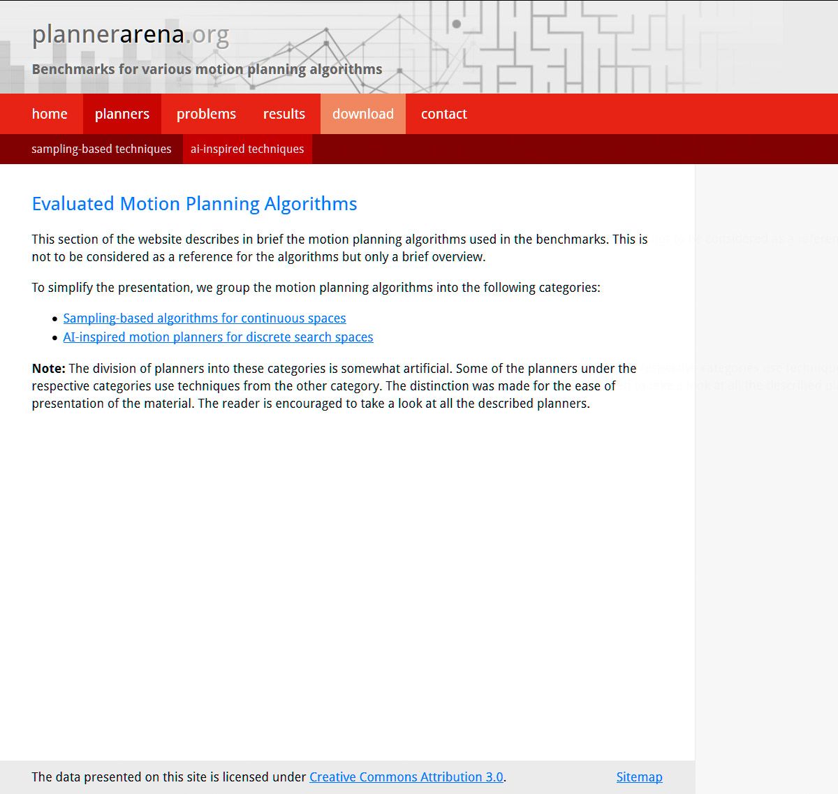 Plannerarena.org presents benchmarking results for a variety of motion planners and algorithms on a variety of planning problems.